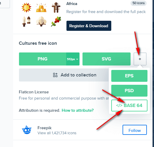 2 – عندما تجد الايقونة المناسبة للمدونة سوف تقوم باختيارها وسوف تنقر على + بعدها تختار الاخيار الاخير BASE 64 .