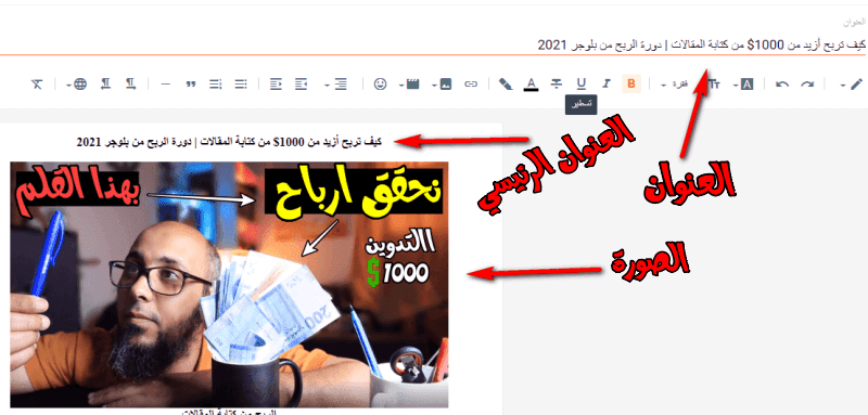 العنوان الرئيسي : كيف تربح أزيد من 1000$ من كتابة المقالات | دورة الربح من بلوجر 2021 .