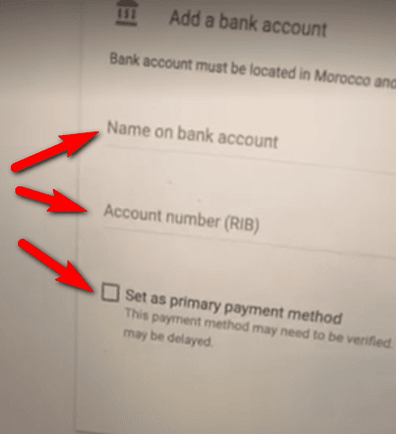 الذي يجب عليك اخي المتابع ان عملية تغيير دفعات ادسنس من خدمة Western Union إلى البنك ليست مثل اضافة البنك من جديد . فعملية اضافة البنك من جديد يطالبك فقط باضافة اسم حسابك البنكي مثلا ” jamal kamal ” . ايضا اضافة RIB والذي يتكون من 24 رقم والذي يخص رقم حسابك البنكي الذي تستلم منه الاموال ، ثم بعدها يتم ارسال لك مبلغ في البنك واثبات به حسابك .